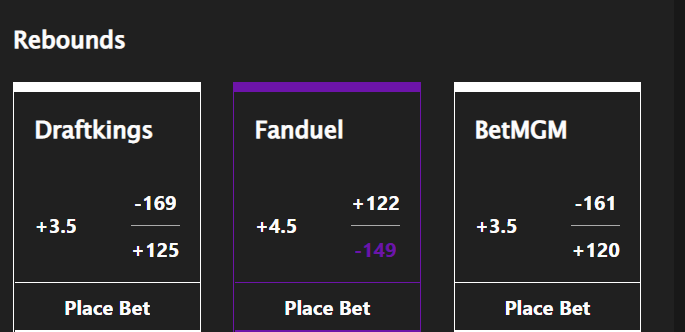 This is still a better return than the -6.6% EV of a bet at Draftkings or MGM, but it is still a negative expectation bet and therefore not a good one. Now, let’s repeat the same scenario with another prop line, Spencer Dinwiddie’s rebounds prop from the 12/8 Wizards-Pistons game: